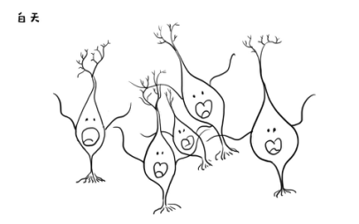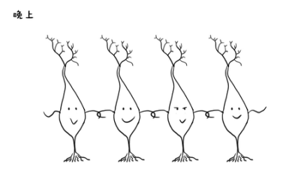 科学家通过观察小鼠在睡眠前后的行为和神经元突触大小的关系发现:白天时,大脑内神经元兴奋,突触长而多,利于从外界获得知觉并快速反应,却如“一团乱麻”,不利于形成稳定的“牵手”和长期记忆。