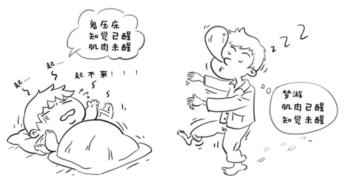 同时,除去呼吸、心跳和肠胃蠕动这些必须的非自主活动,人的其它肌肉会被“勒令罢工”。若知觉还未清醒,肌肉能力却率先恢复,就发生了人们常说的“梦游”。反过来,若是知觉清醒了,肌肉还尚未“复工”,就发生了人们常说的“鬼压床”。被“鬼压床”的人,看得见,听得清,却说不出话,也动弹不得。其实这只是一种常见的睡眠节律紊乱,发生的时候,不要慌张,平缓呼吸,动动手指头,骨骼肌之间可以相互唤醒了。