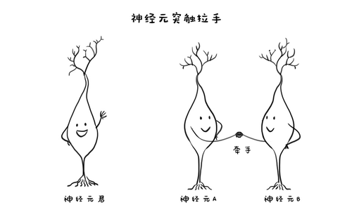 当神经元母体收到了高于阈值的电刺激时,它就会兴奋,并在突触末端释放一种叫做乙酰胆碱的神经递质,而这又迅速被临近的神经元所感知,电信号就像多米诺骨牌一样,在神经元网络中有序传导开了。所谓的记忆,其实就是在这种反复的刺激下,产生于神经元之间的“手拉手”而已。
